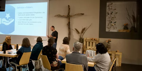 Wir starten jeweils mit einem Bibelinput und beten anschliessend in Gruppen für die Anliegen der verschiedenen Bereiche. Es gibt auch Raum für persönliche Anliegen und das Abendmahl.